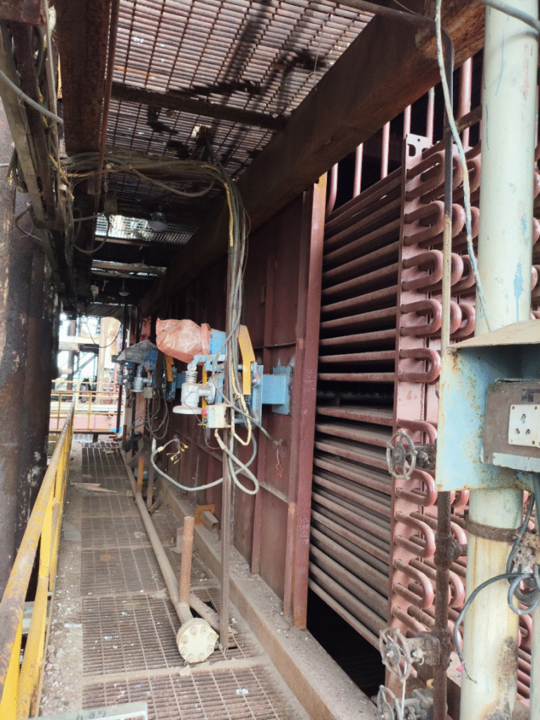 The membrane panel, a vital component for efficient heat transfer and overall boiler performance, has been meticulously fabricated and is now staged for replacement. Positioned right in front of the boiler, this preparation ensures precise installation, enabling smooth execution of the renovation process. By minimizing downtime, we uphold our commitment to operational excellence and efficiency.